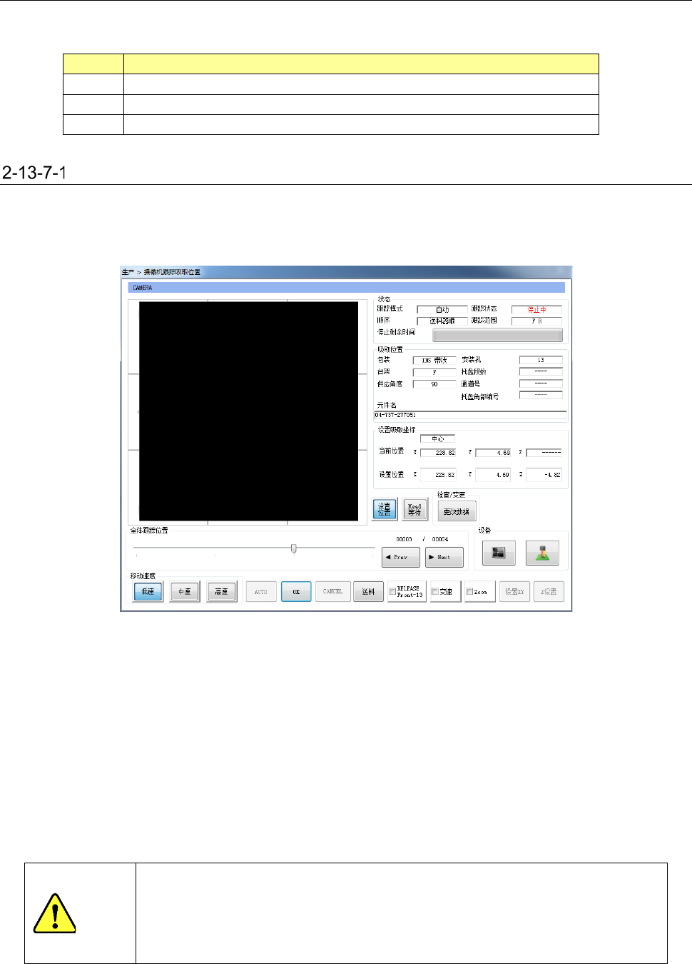 ● 在从未进行过供料器台架识别的情况下(返回原点后立即、或台架上升后立