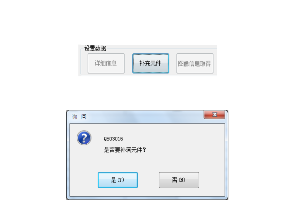 按[是]按钮后,执行补充元件。补充对象为带式,管式供应的元件。元件剩余数为 0 已经无元件的,