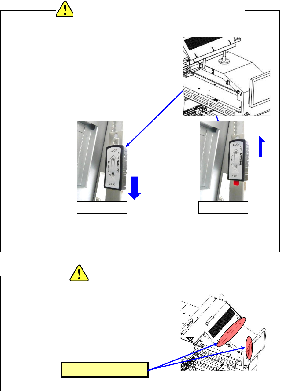 第 1 部 基本篇 第 1 章 装置概要 1- 10 ◆ 打开 安全盖(安全罩) 时,先把 盖(罩) 子推上去, 再把锁杆向箭头 ( L OCK )方向推, 锁好。 确认上了锁之后 ,再放开手。 ﹡ 没有上 好锁就松 手时, 安全盖(安全罩 )有落下来的危险。 ◆ 要关 安全盖(安全罩) 时,要先 解开锁, 再关闭。 把安全盖(安全 罩)向上提, 再把锁杆向 O PEN 方向推,解锁。 (请注意,解锁 时要防止安全盖(安全罩 )落下来 …