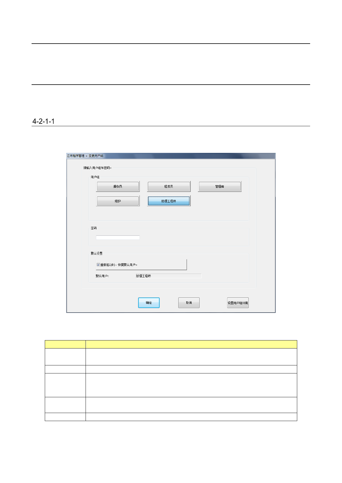 选择用户组,输入密码后,按[确定]按钮,即变更用户组。