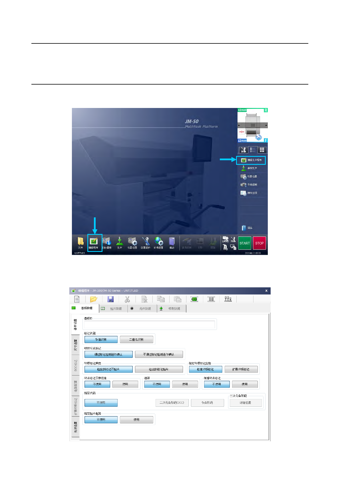 新建程序时,程序名为 UNTITLED,基板 ID 显示空白。