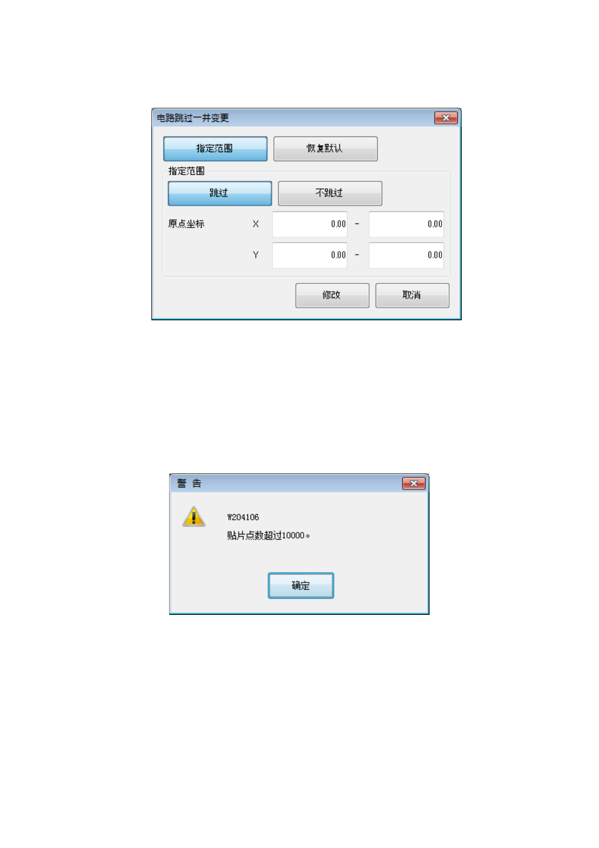 以范围设定中设置的 XY 坐标范围内有电路原点的电路为对象,设置跳过/不跳过。