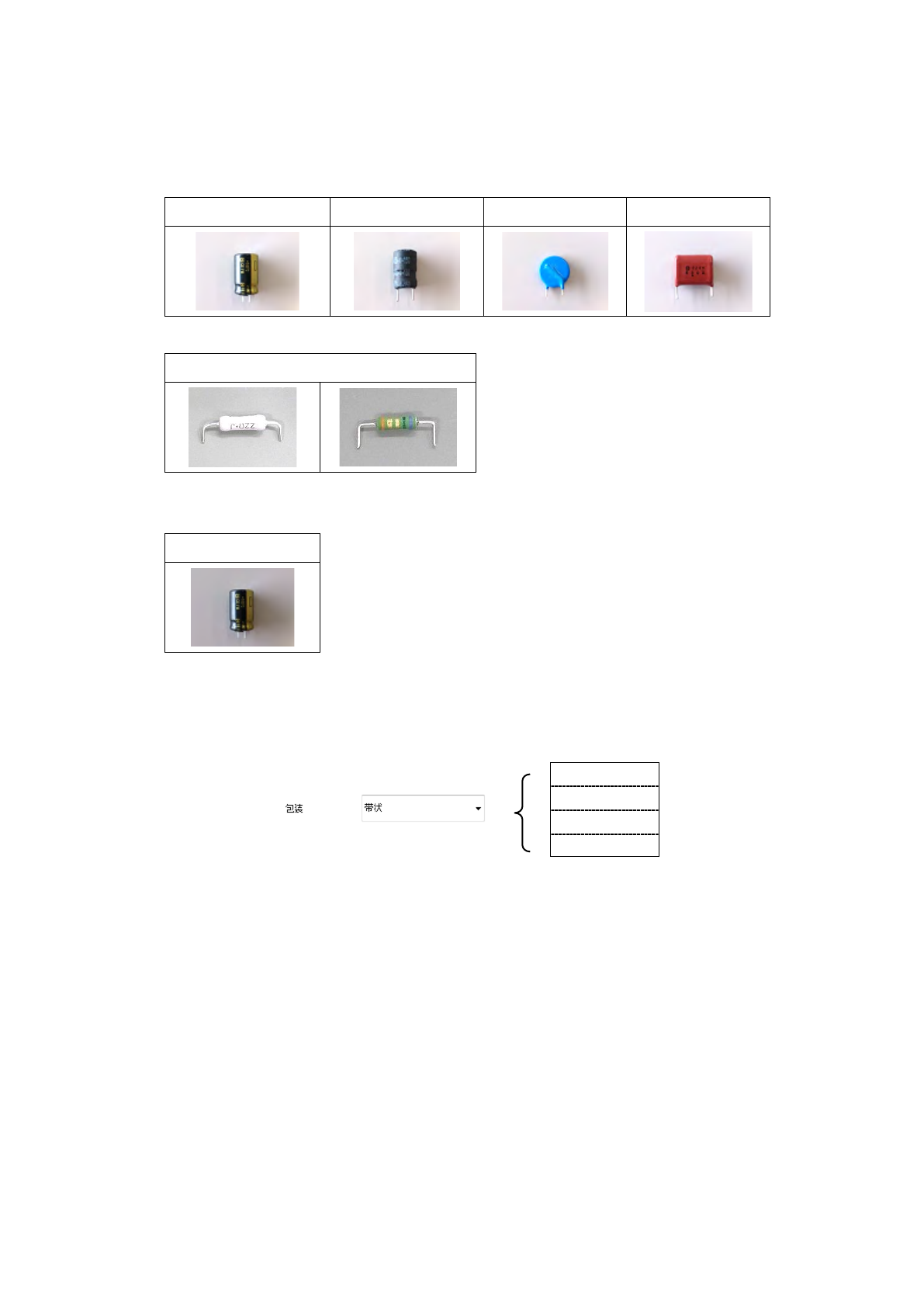 使用 JM-50 可以对如下所示插入元件进行贴片。插入元件是指下述元件,分别拥有管脚部分