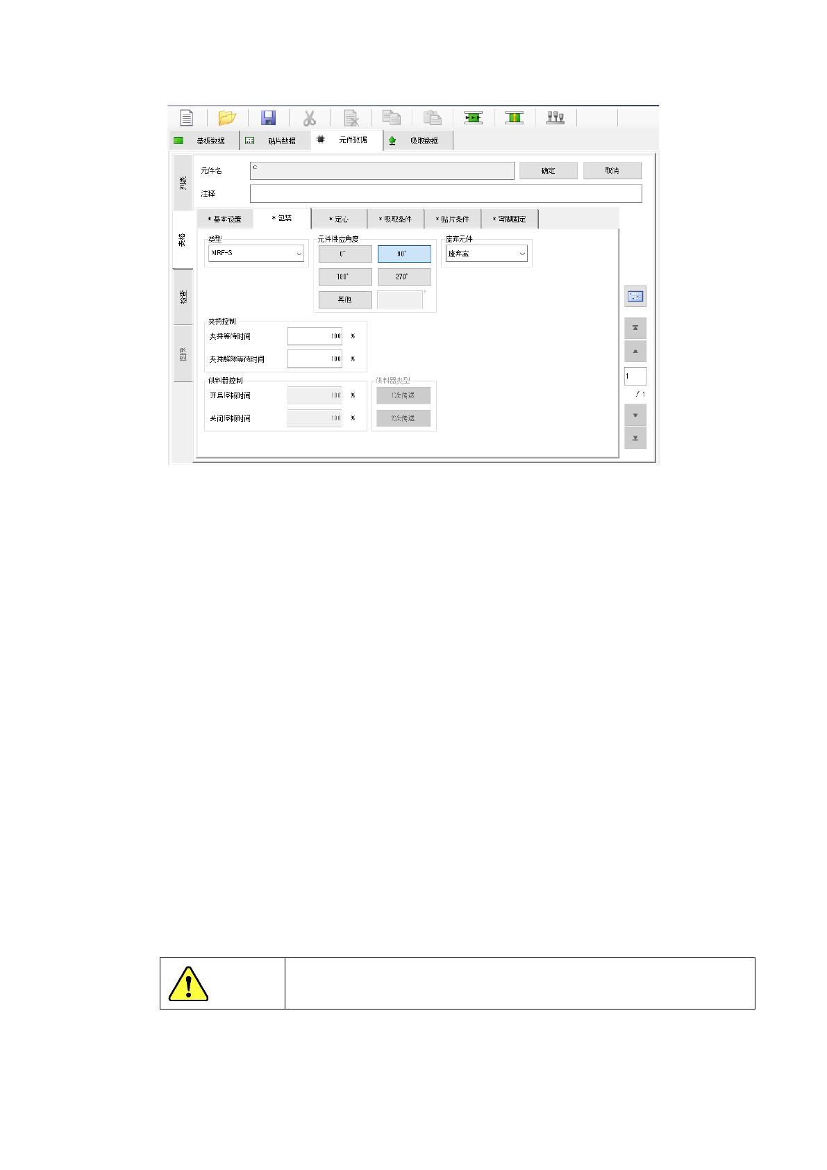 对定心时发生识别错误,或管脚翘起检查时发生错误的元件废弃方法进行设置。