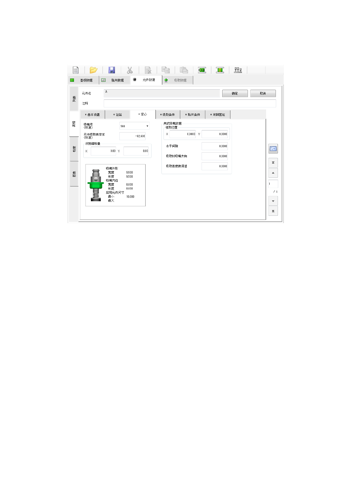 轴向吸嘴的以下设定与通常元件有所不同。