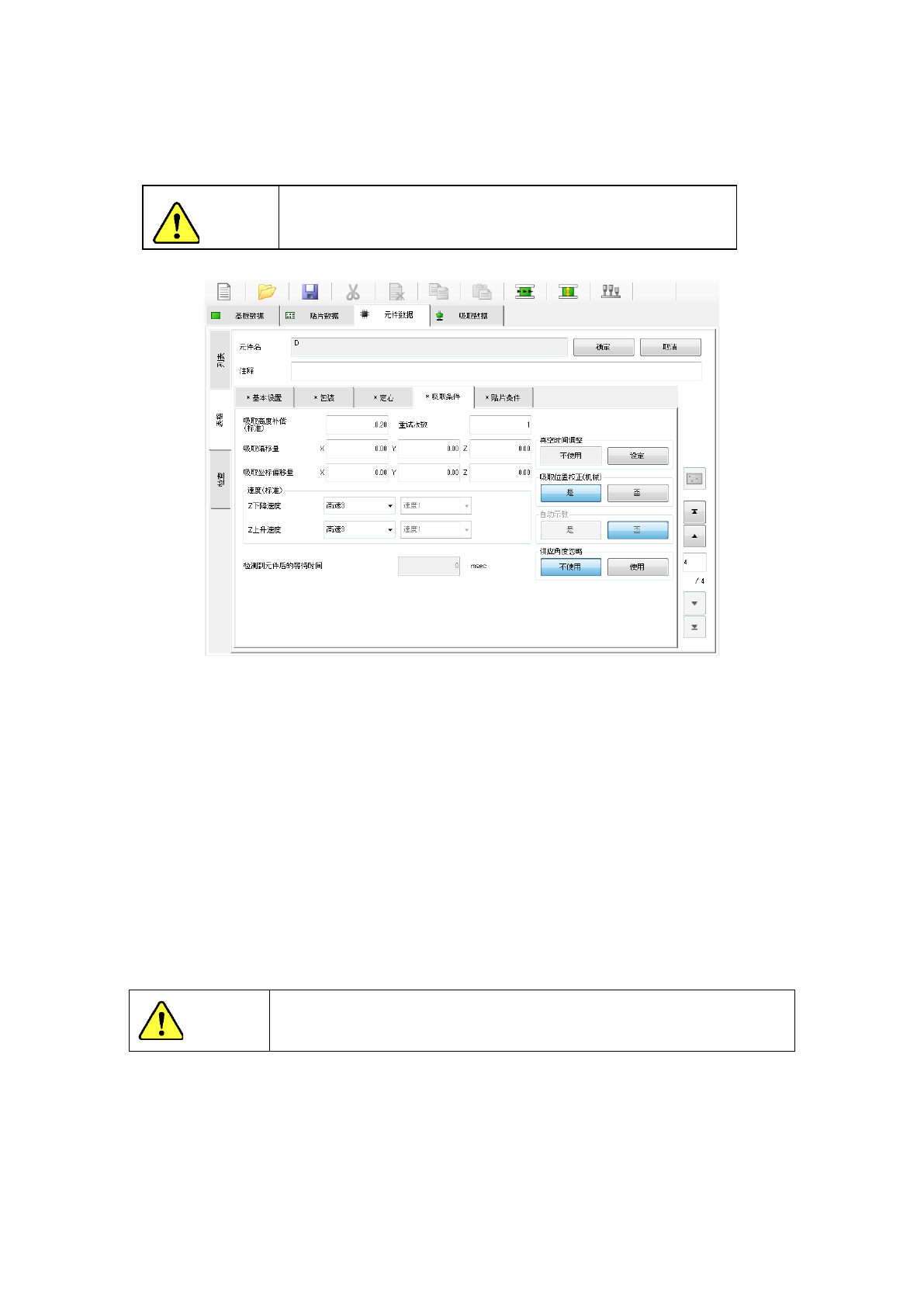 当设置为“0”时,因元件尺寸(高度)偏差等的影响,吸嘴到达不了元件,无法吸取元件或发生芯