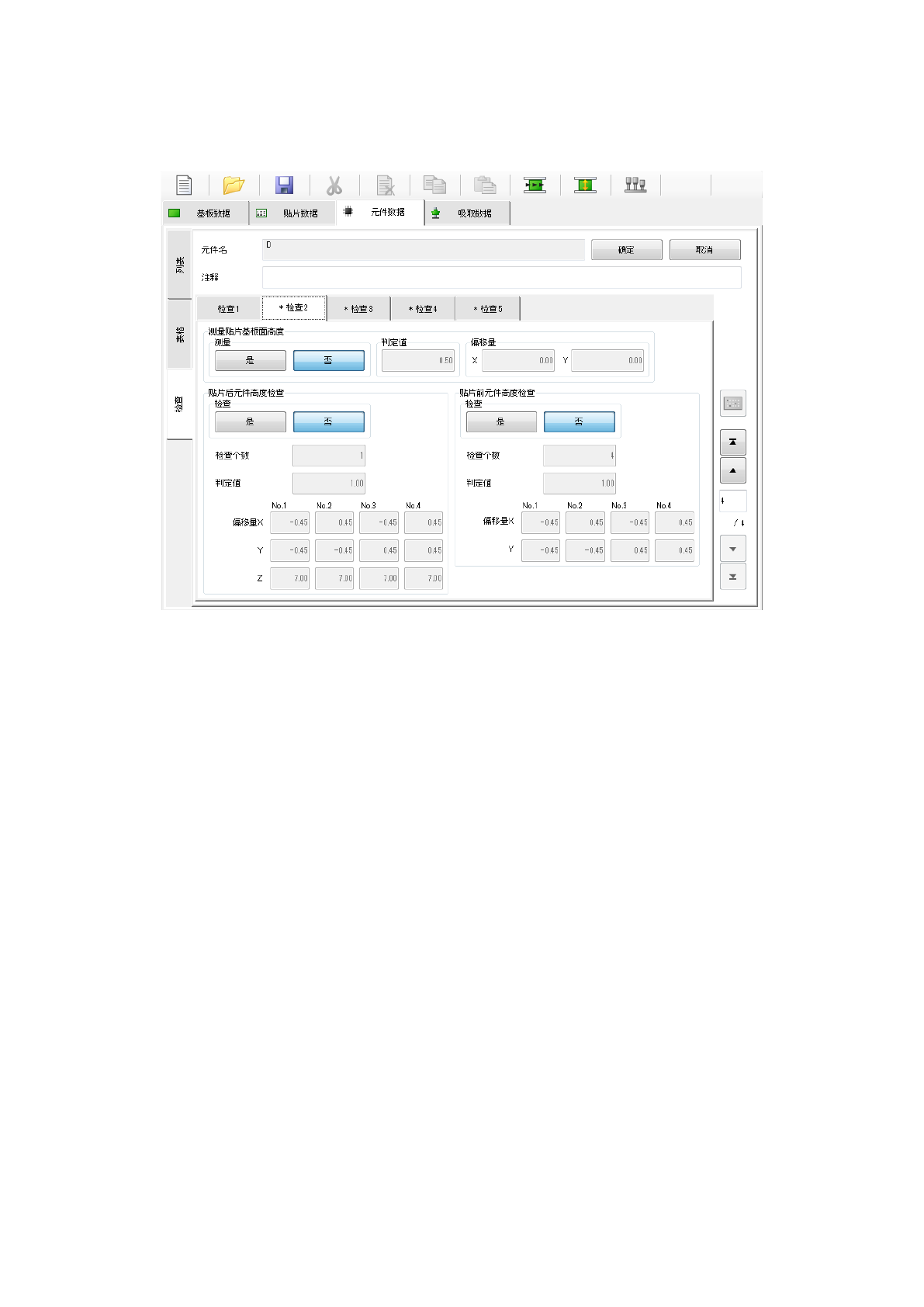 测量结果若在(-判定值~判定值)之间,则判断可以贴片。