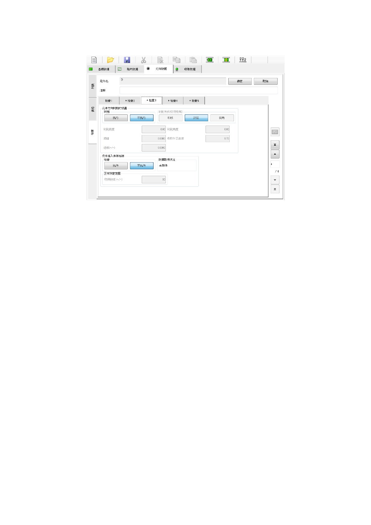 对“元件方向判别的设置”、“ 元件插入异常检测”进行设定。