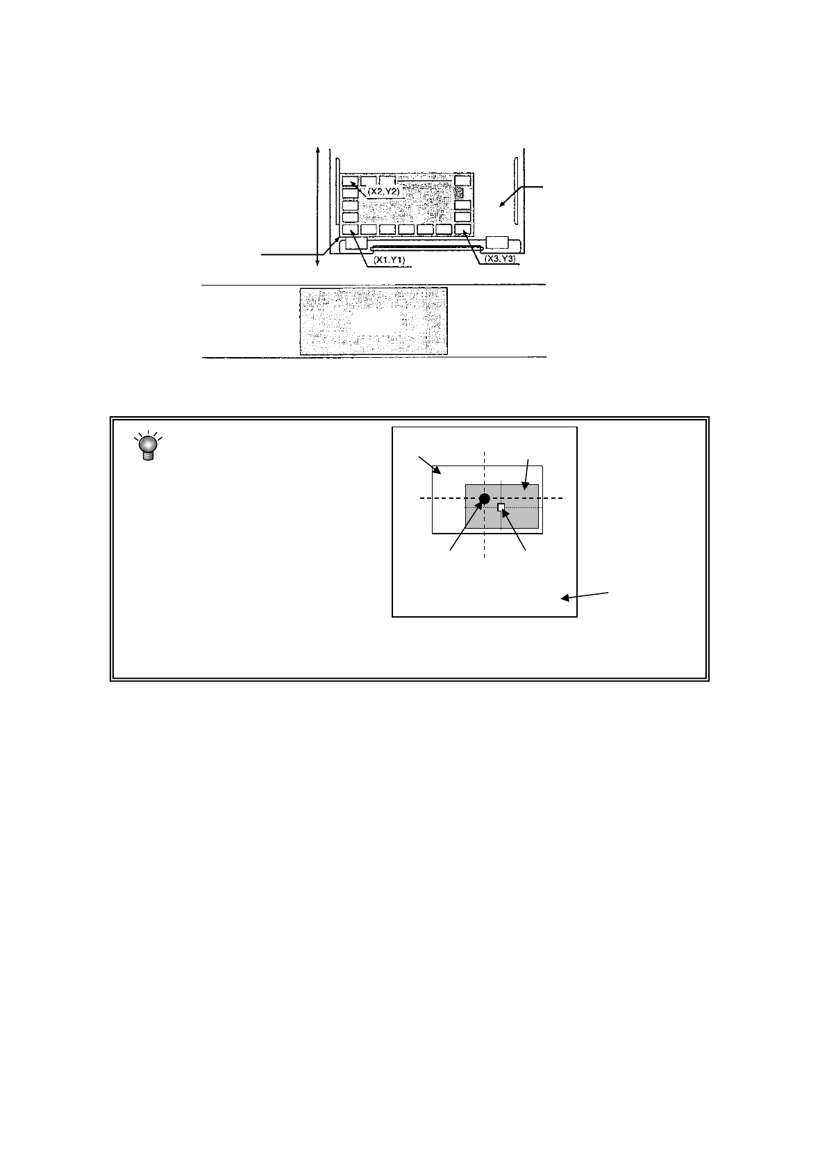 第 1 部 基本篇 第 4 章 制作生产程序 4- 111 料管 供料器 、 带式供料 器 、 径向供料器 、 轴向供料器 只能输入“ X1 Y1 ”。 对于托盘, 因 Head 要移动到各 元件的位置进 行吸取, 必须进行 3 处 ( 下图 X1Y1 、 X2Y2 、 X3Y3) 示教。 XY ,请设置放入 元件 的 框的中 心坐标,而不是元件中心。 ※ XY 或 Z 的吸取位置不正确时 ,易发生 芯片站立和吸取 失败等 错误 。 (…