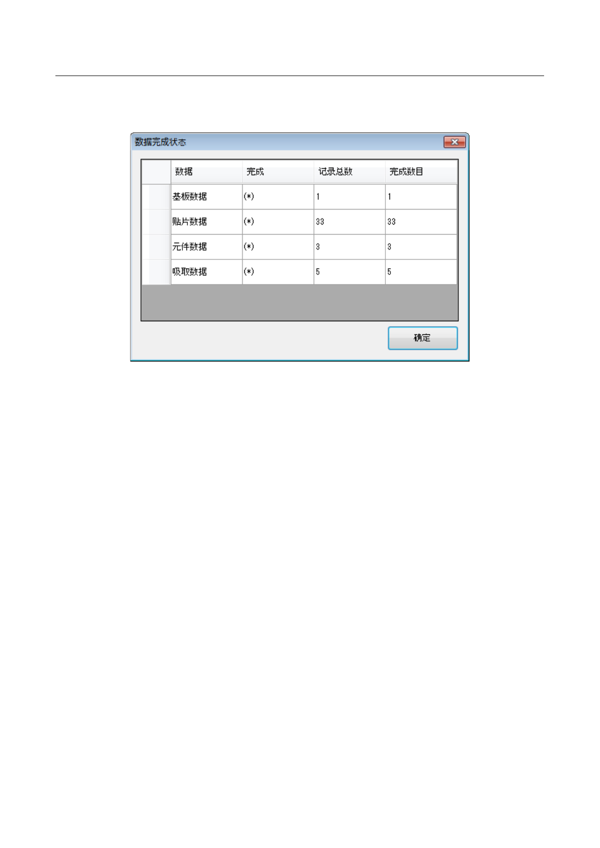 从菜单中选择[数据]-[数据完成状态]后,会显示如下画面。