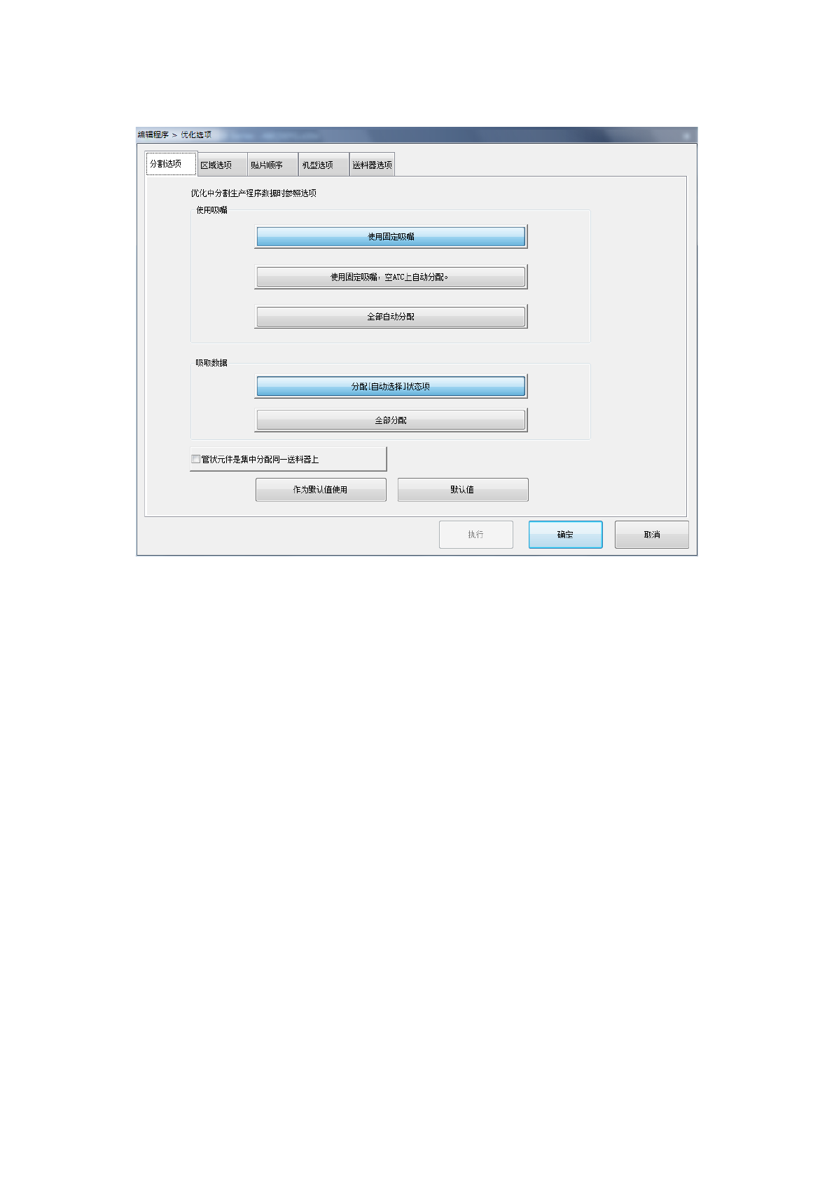 分割选项 设置分配吸嘴及吸取数据时的优化参照选项。
