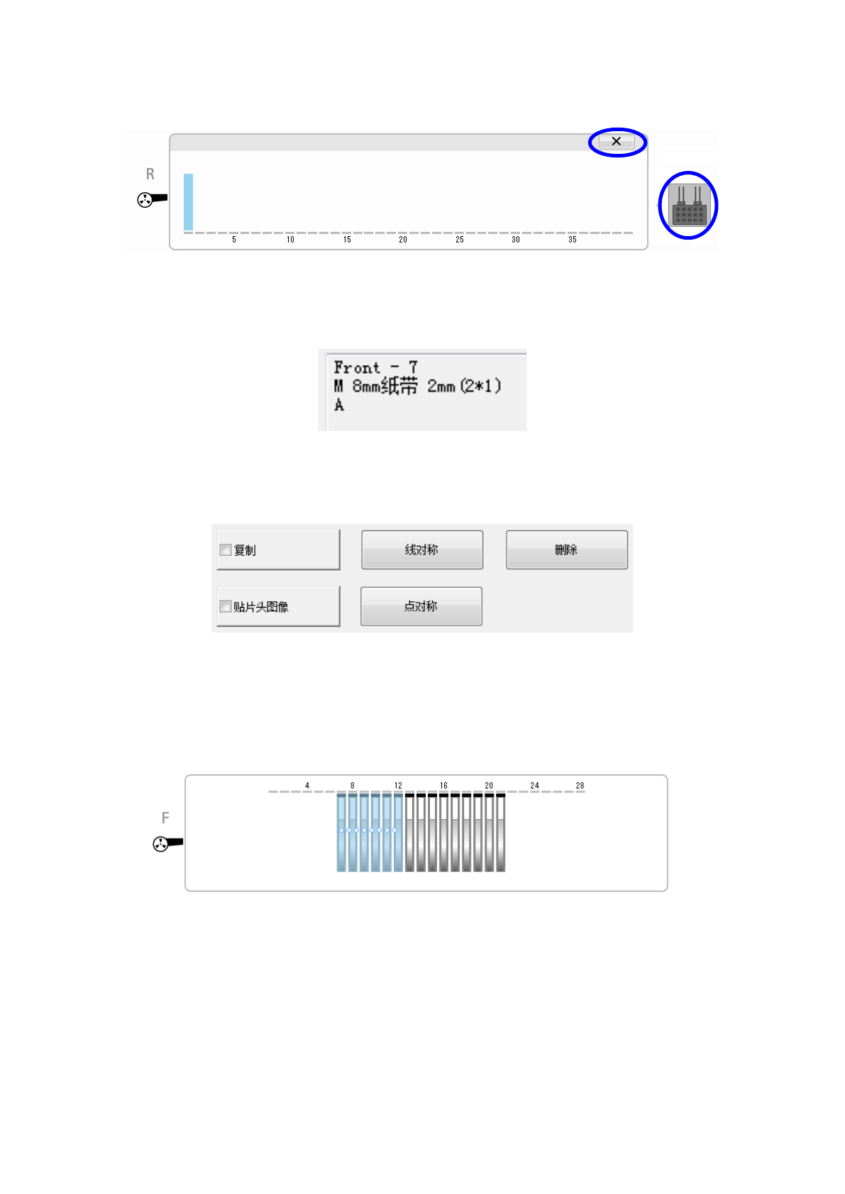 勾选操作按钮的「贴片头图像」按钮时,即可显示点击送料器分布画面时的贴片头图像,显示浅蓝
