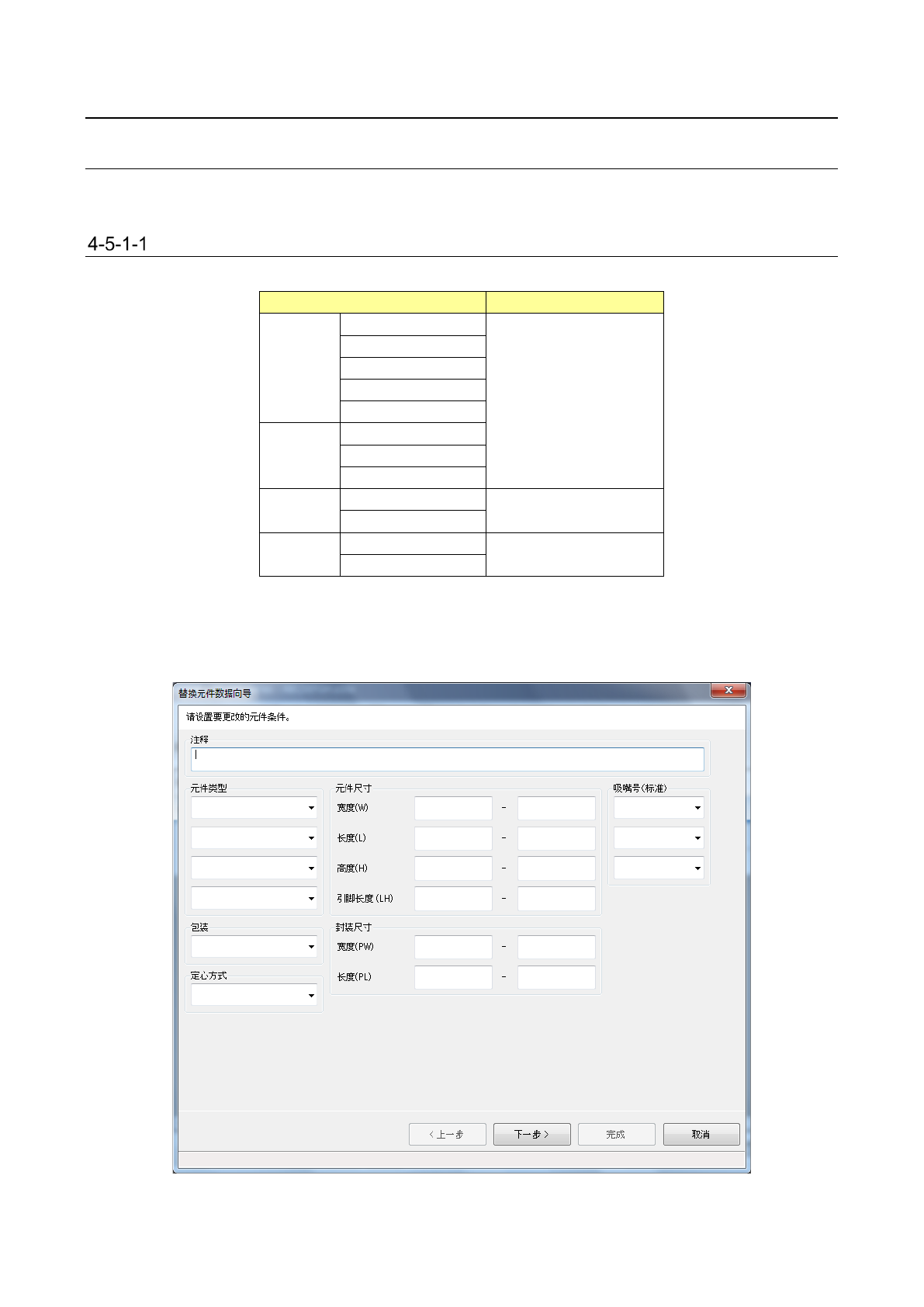 第 1 部 基本篇 第 4 章 制作生产程序 4- 133 可设置的 条件如下所示 。 项目 内容 注释 指定注释。 如果输入的字符 串在注释中存在时,即成 为替换对 象的记录。 元件类型 元件种类 最多可指定 4 种。 当 指定多种元件 时, 所指定 的所有的元件 均为指 定对象。 1 个也不输入时 ,所有元件种类均为设定 对象。 元件尺寸 逐一指定元件的 长度、宽度、高度、管脚 长度的最 大值和最小值。 如果省略输入, 则按各自可输…