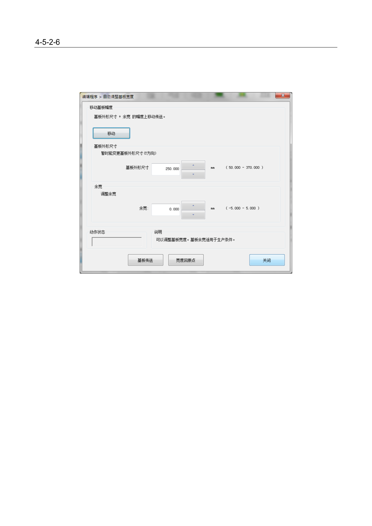 按照基板外形尺寸+余宽的宽度移动传送宽度。