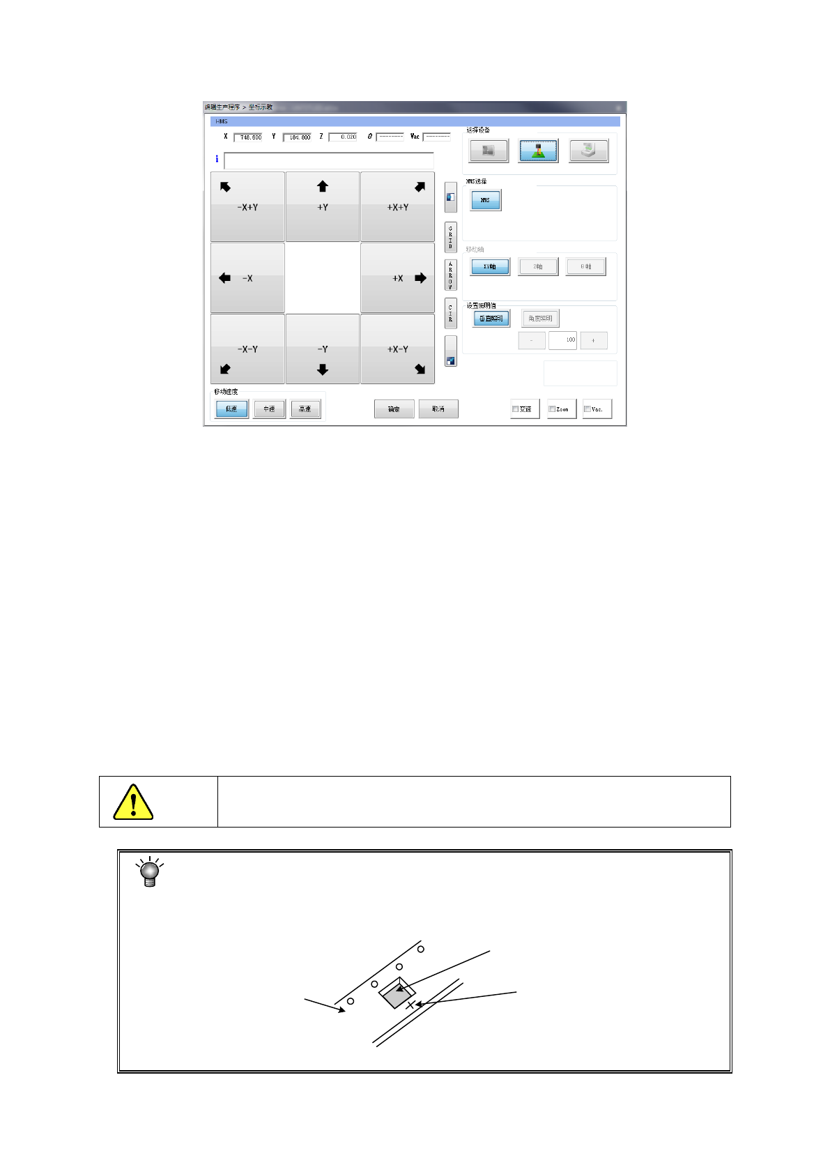 第 1 部 基本篇 第 4 章 制作生产程序 4- 164 4) 置照明值 可在 照明设置中变 更当前 使用中的 摄像机设置的 照明 亮度。 5) 动速度 轴的移动速度可 从 低速 、中速、高速 3 个选项中选择 。 如果勾选变速复 选框时,持续移动一定时 间后会 加速 。 在使用摄像机的示教画面中,画面内会显示选择的摄像机的映像。触摸 摄像机 映像框时, XY 轴会向 8 个方向移动。 触摸 方向的 画面框会变为浅蓝 色,触摸的过程中…