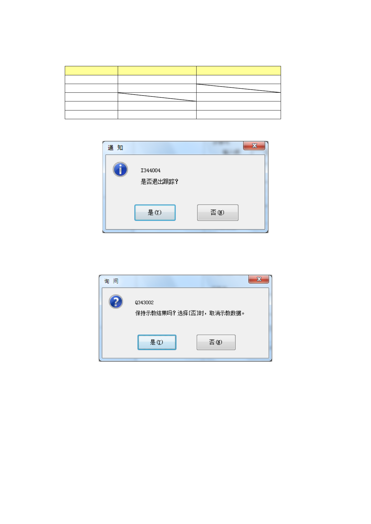 在询问中如选择[否],则放弃跟踪操作中示教的坐标值,回到开始跟踪前的坐标值,结束跟踪。