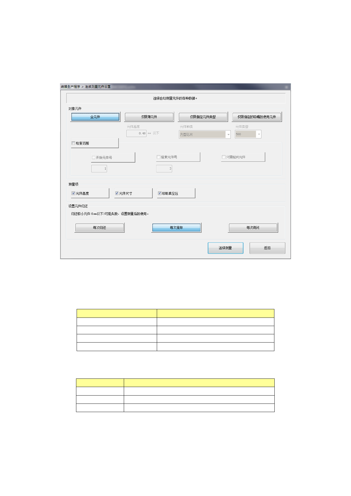 仅测量要使用指定的吸嘴的元件。