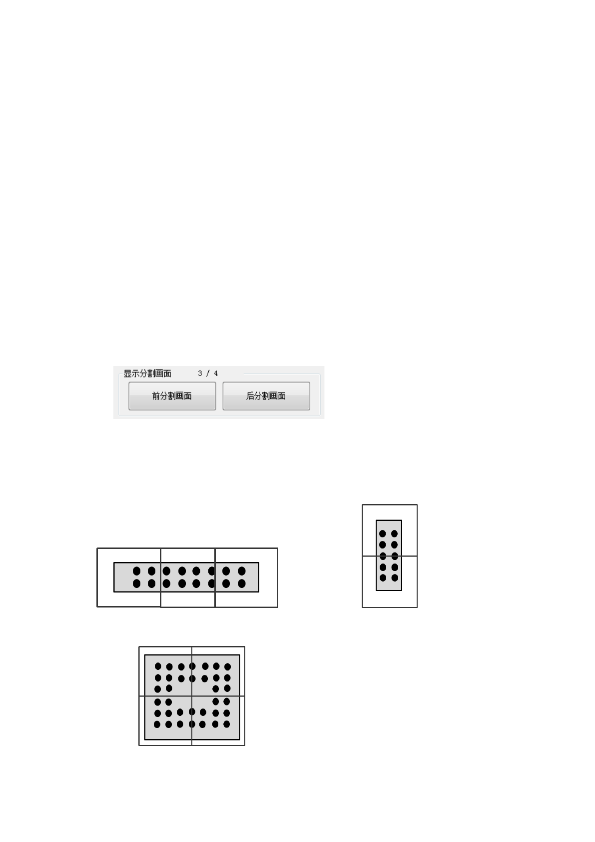 检查结束后显示 4/4 画面 → 按下前分割画面按钮则显示 3/4 画面 → 再按下前分割画面按钮