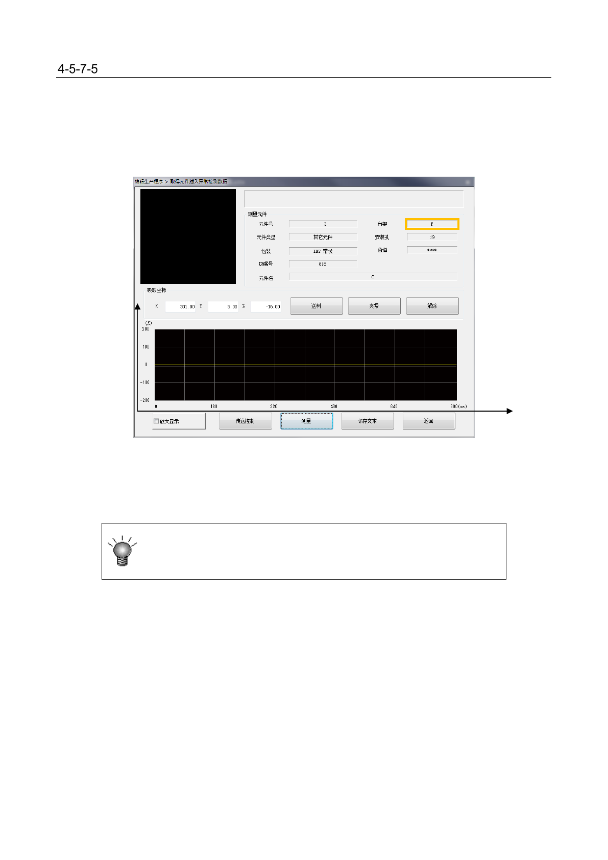 执行生产动作,取得扭矩率。贴片位置是生产程序对象元件的第一贴片点。对取得的结果以