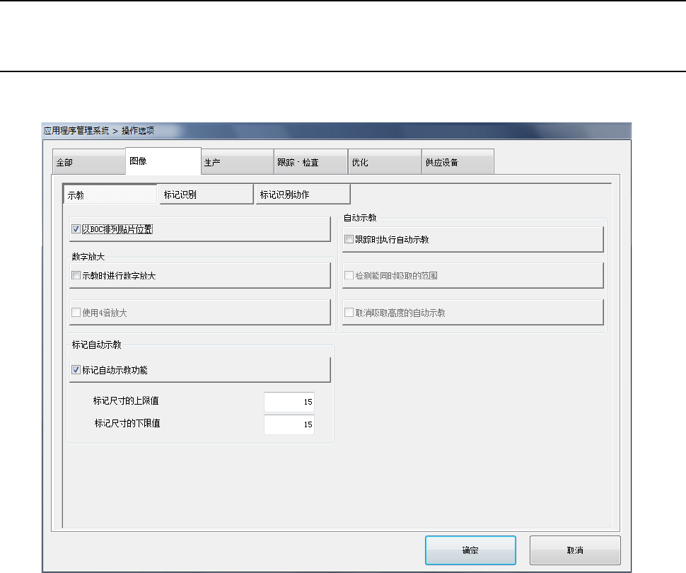 勾选了「标记自动示教功能」时,设置标记尺寸的下限