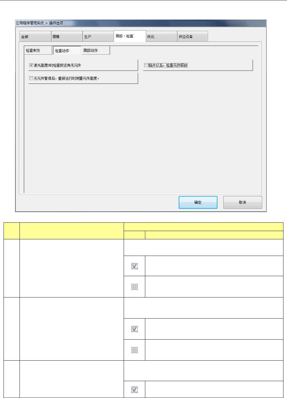 按下[检查动作]按钮,会显示“检查动作设置画 面 ”。