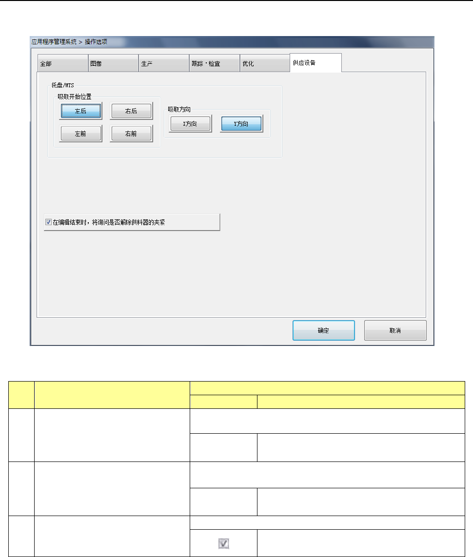 设置托盘等供给装置的操作选项。
