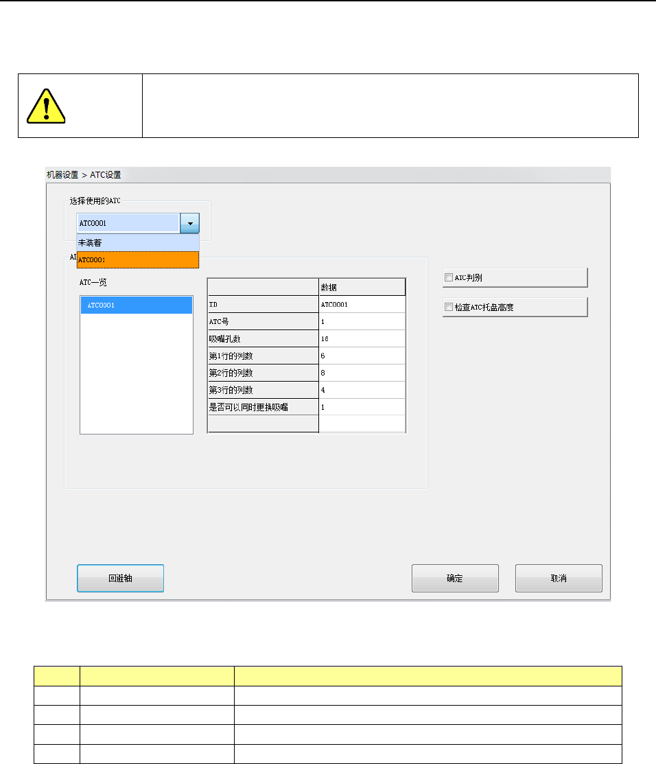 将 ATC 判别设为 OFF 时 ,不 实施 ATC 判别就从 ATC 卸下或插入吸嘴
