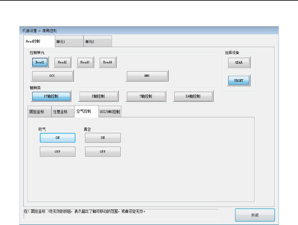 按下 [吹气]、[真空] 的 [ON] [OFF] 按钮,进行控制单元中选择的Head的吹气控制、真空控制。
