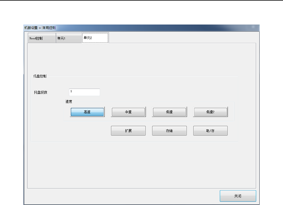 选择 [托盘控制] 的 [速度],按下 [扩展] 按钮,可按选择的速度拉出托盘。