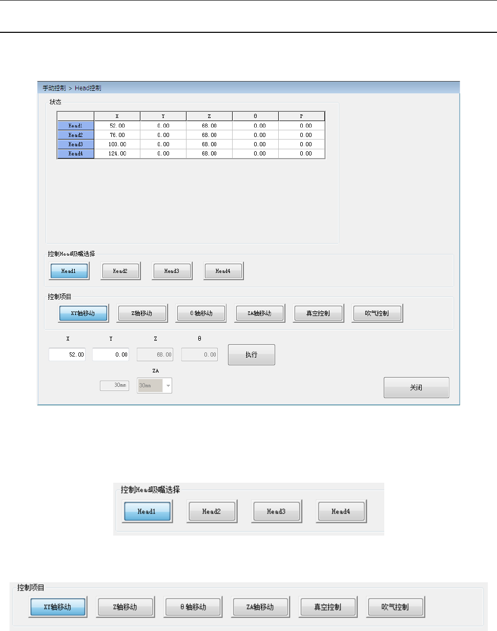 各 Head 的 Z,θ,ZA 轴移动控制,坐标显示
