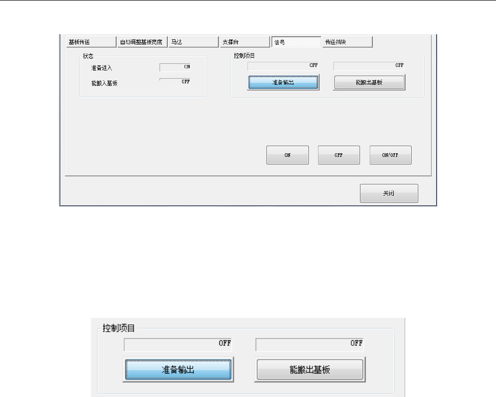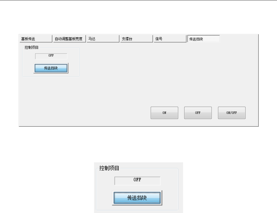 按[ON]按钮、[OFF]按钮、[ON/OFF]按钮控制选择的传送挡块的 ON/OFF。