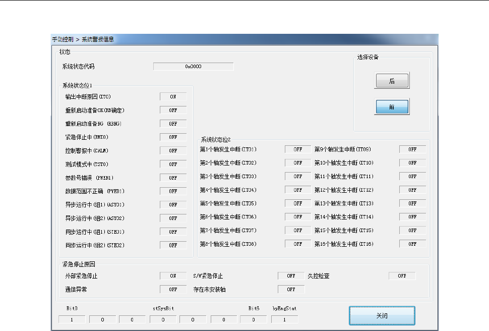 显示状态代码,以及用 ON/OFF 显示各状态位的状态。