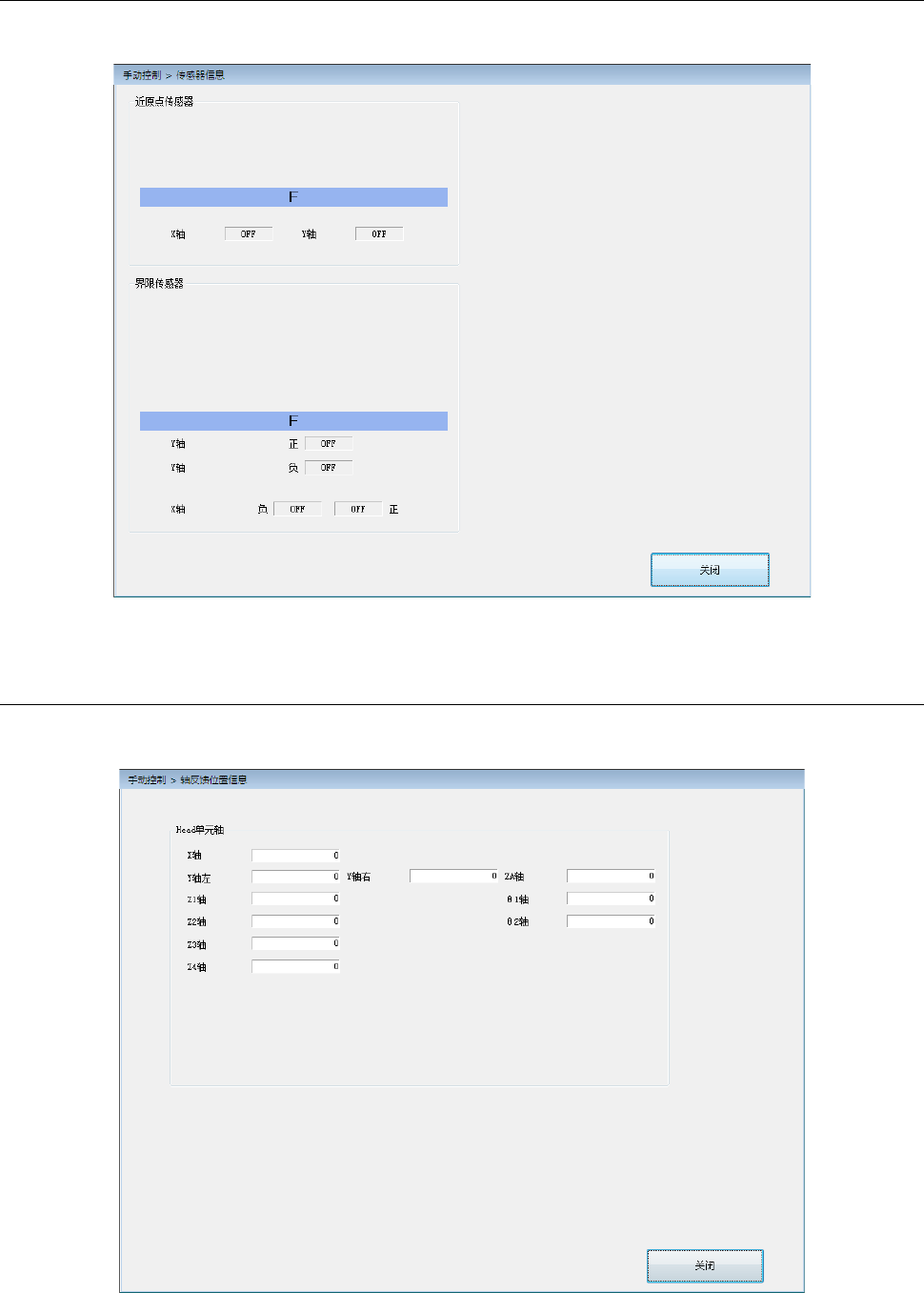 第 2 部 功能详解篇 第 8 章 手动控制 8- 37 8-6-5- 3 传感器信息 在驱动器 状 况 对话框,按 [ 传感器信息 ] 按钮 ,即可显示传感器 信息对话框 。 原点 传感器及界限 传感器 状况用 ON /OFF 进行显示。 8-6-5- 4 轴反馈位置信息 在 驱动器 状 况 对话框 里,按下 [ 轴 反馈位置信息 ] 按钮 ,即可显示轴 反馈位置信息。