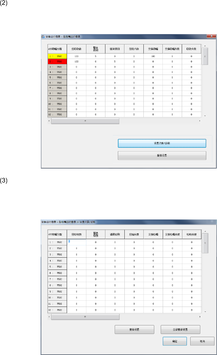 按下[设定次数/级别]按钮后,或菜单的[设定]-[设定-各吸嘴运行信息]后,即可显示[设置次数/级