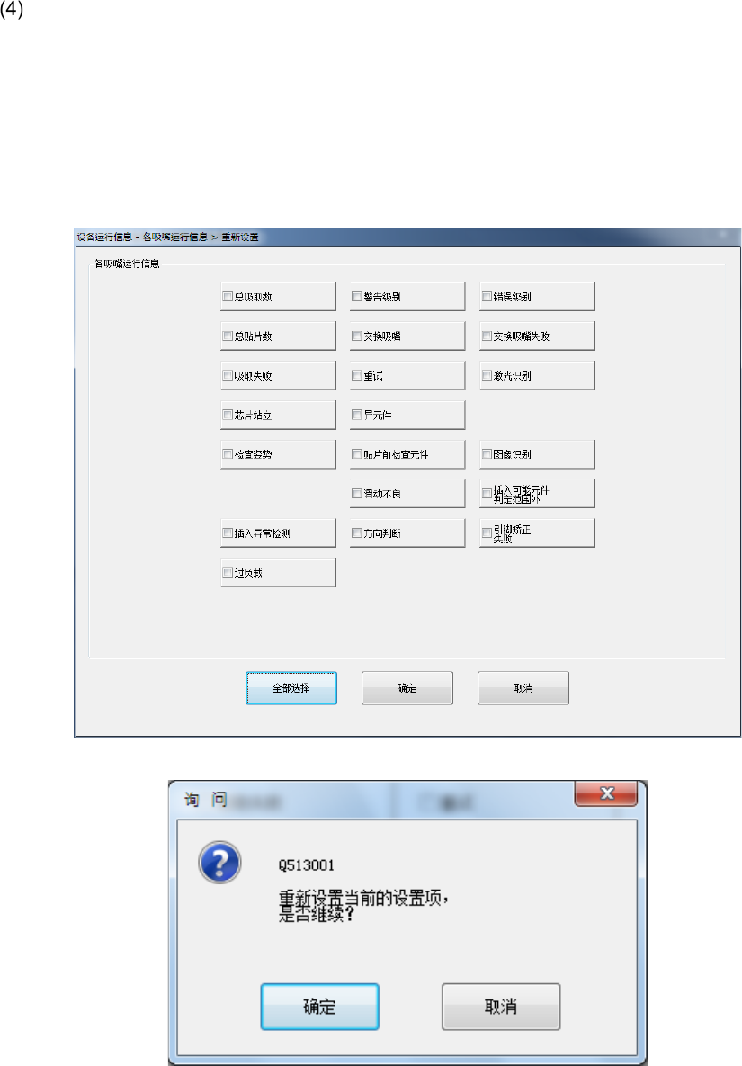 ・ 点击重新设置询问提示信息的[确定]时,组(LF、 LR,或 RF、RR)内所有吸嘴的对象项目