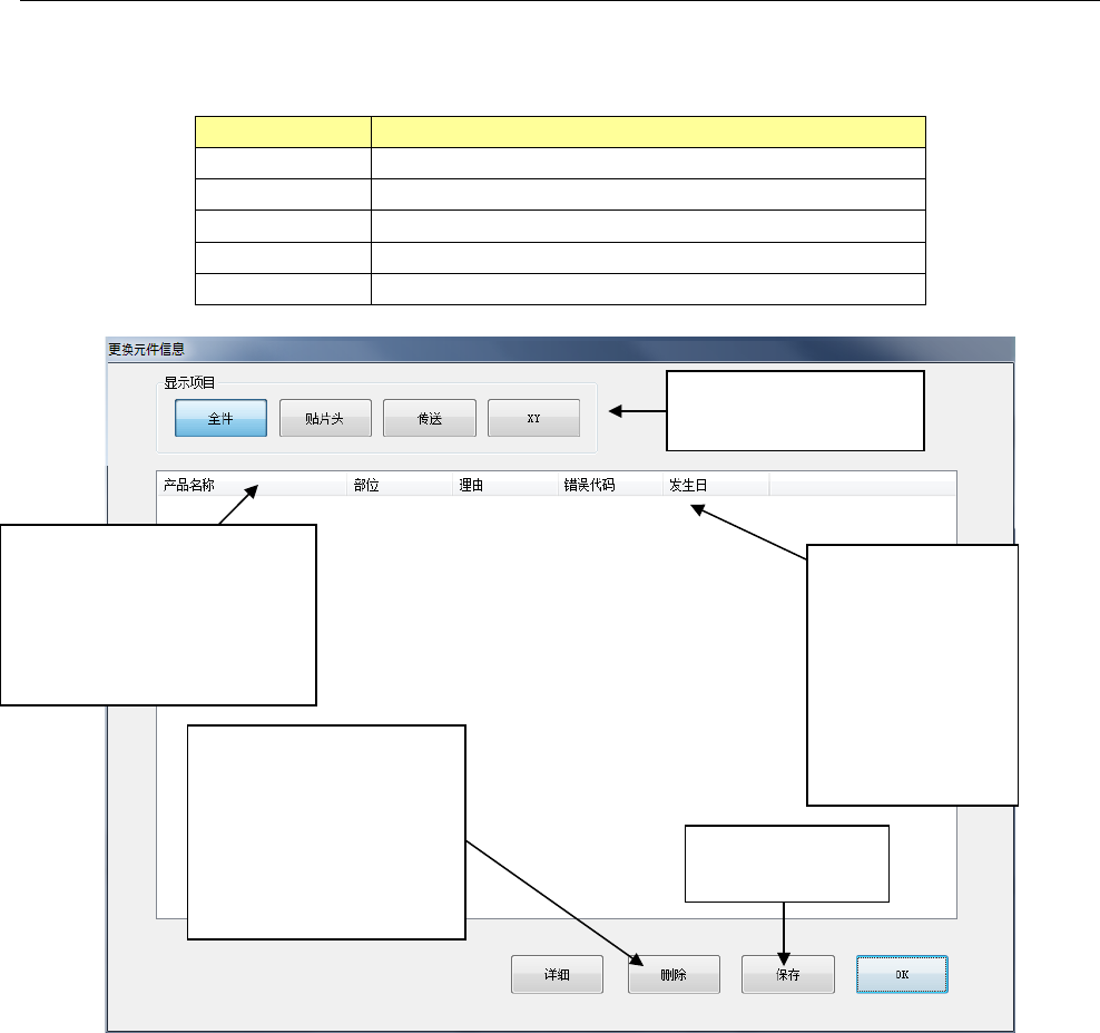 按下各单元按钮,会显示该单元的部件更换信息的详细列表,