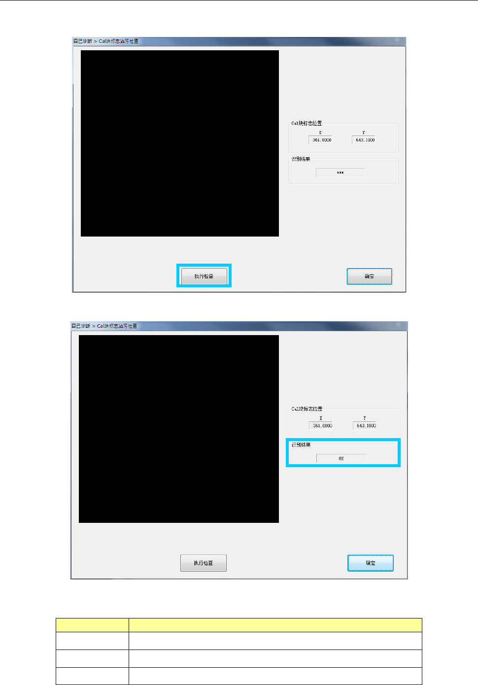 按下「执行检查」按钮,即可执行 Cal 块标志沾污检查。