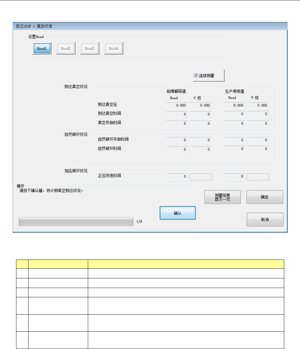 从自己诊断菜单选择[真空]时,会显示真空校准对话框。