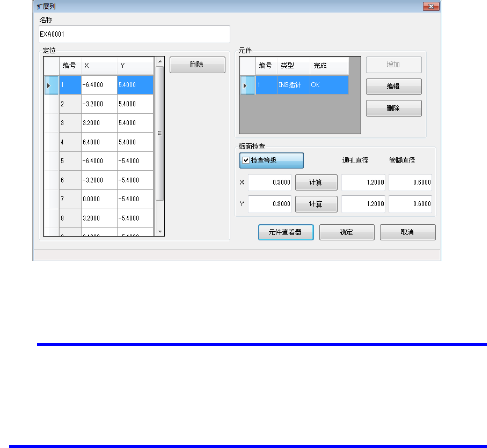第 2 部 功能详解篇 第 11 章 选项组件 11 - 39 ③ 在「第一要素的 配 置」 中,示例中第 1 “球 ” 前端位置为(- 6.0mm 、- 5.0m m )时,按如下输 入: X 偏移量: - 6 .0 Y 偏移量: - 5.0 Z 偏移量: 0 (未使用) θ 偏移量 : 0 ・ 允许值 通常设置为 “0 ”。 ④ 「配置检查」 配置 检查 处 初始值为勾 选状态 ( 元件 种类为插入 元件 时 ) 。 这是 检查 销…