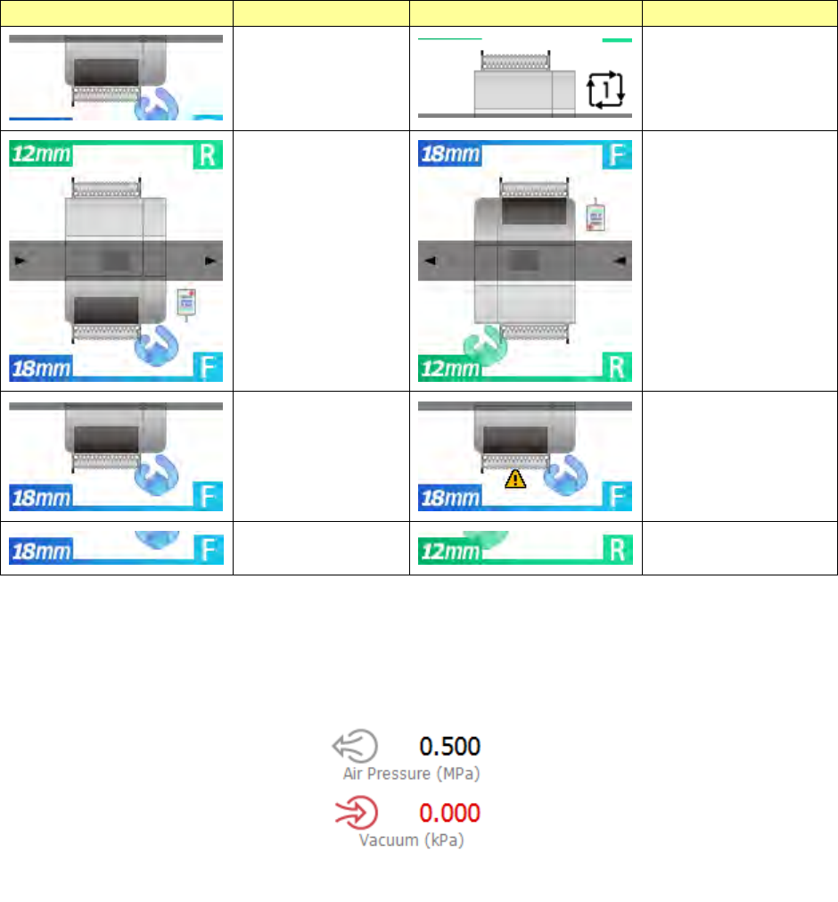 第 1 部 基本篇 第 1 章 装置概要 1- 63 图标 意义 图标 意义 未处于循环暂停 等 待状态 处于循环暂停等 待中 操作面板 操作方向 从前面 操作中 操作面板 操作方向 从后面 操作中 台架连接正常 台架连接不一致 18mm 间距台架 使用中 12mm 间距台架 使用中 触摸事项的简易 显示区域,可切换为气压 监视器。 再次触摸可切换 为简易显示。