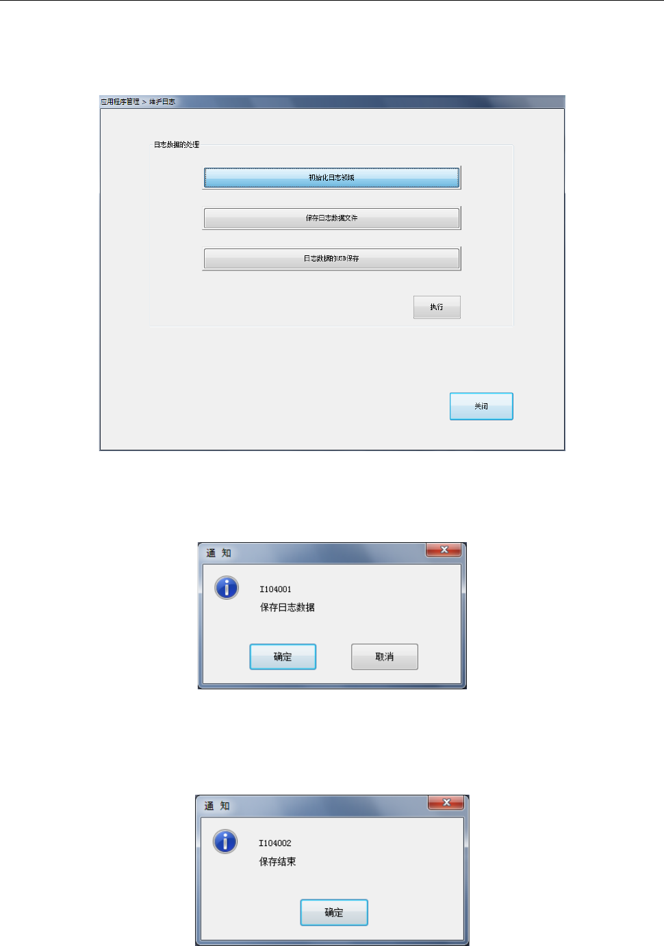 选择[保存日志数据文件]或[日志数据的 USB 保存] ,按 [执行]按钮,会显示确认信息。