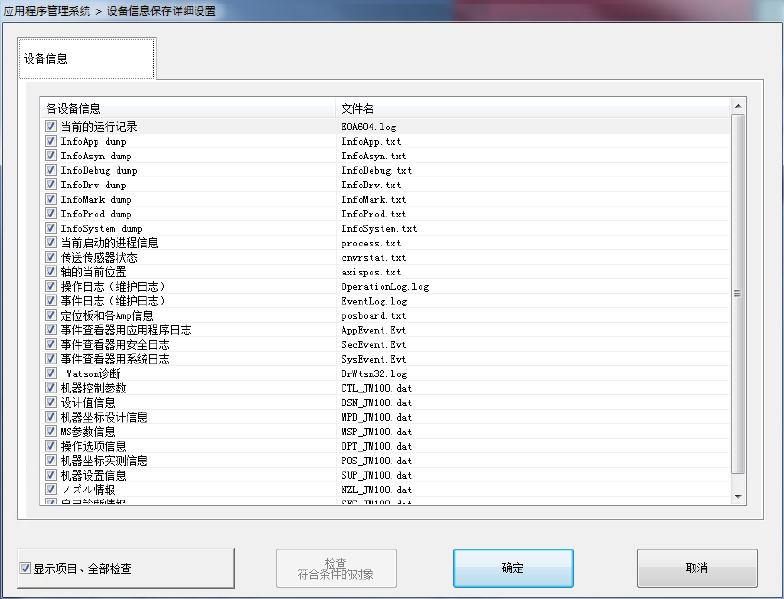 对设备信息的取得进行设置时,如勾选了「设备信息」,将取得以下的设备信息,进行以下文件夹