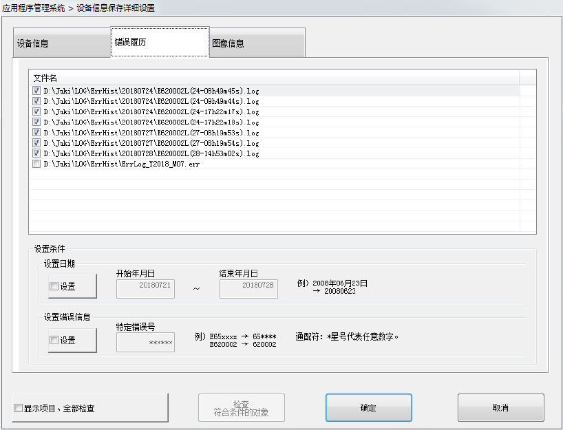 保存对象文件夹:D:\JUKI\LOG\ ErrHist