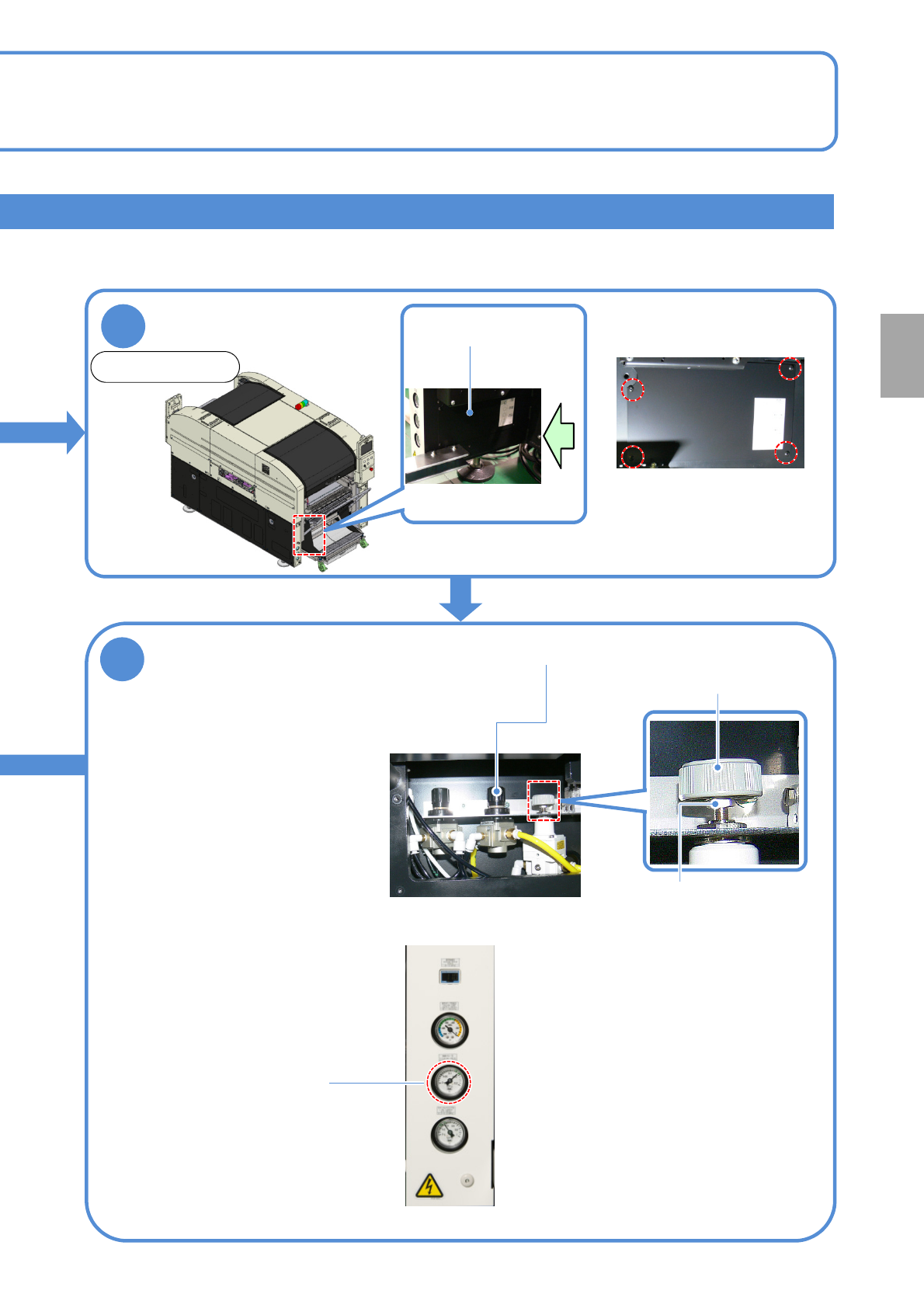 NPM-W 2 EJM7DE-MB-04M-00 Front side Remove the cover inside of the cart ■ Image as seen from the arrow direction 4 Adjust the pressure to be within the range 5 Cleaning blow regu lator knob ● How to use the regulator kno…