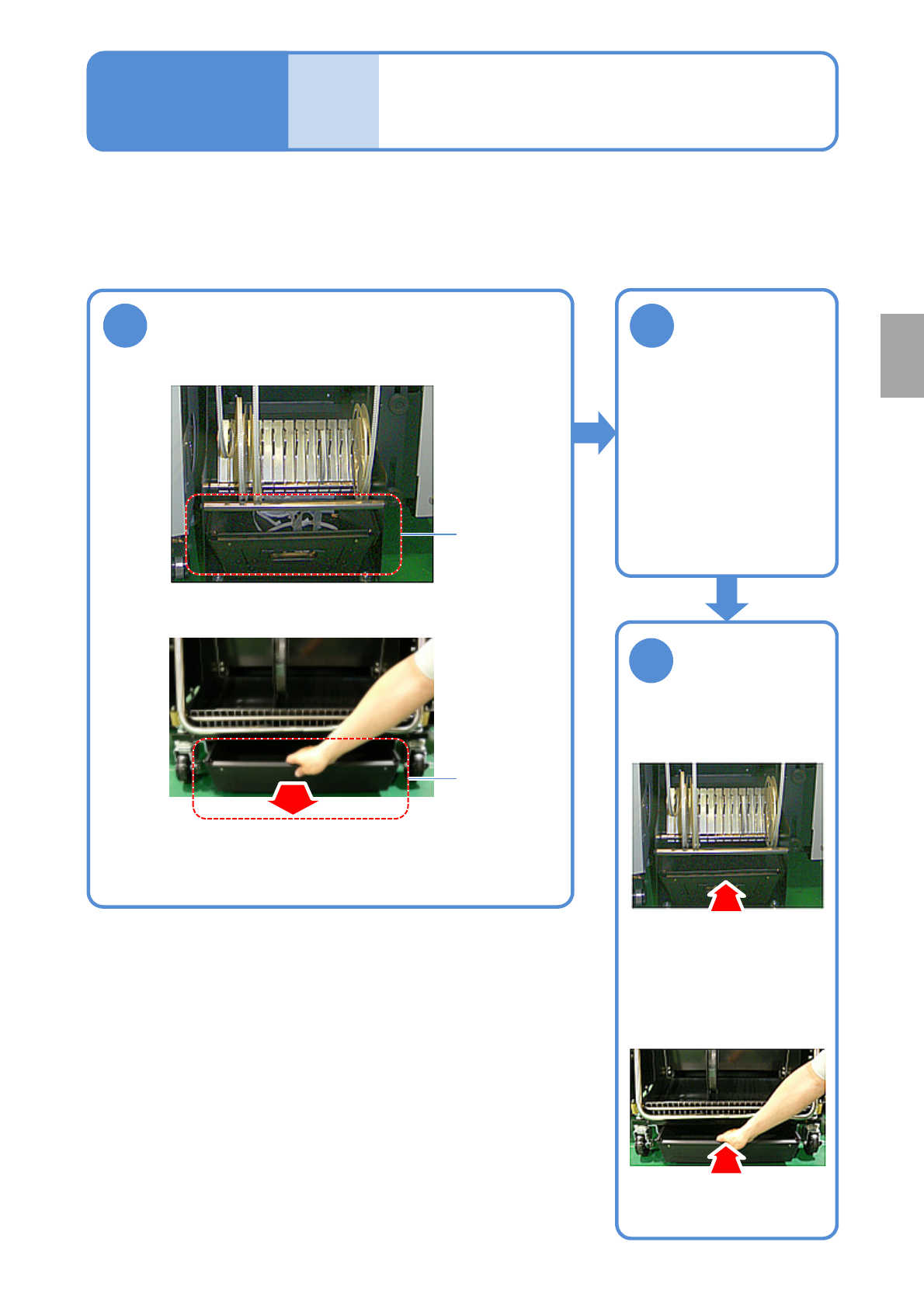 ●Clean the used-tapes box of the feeder cart and 13-slot feeder (option).
