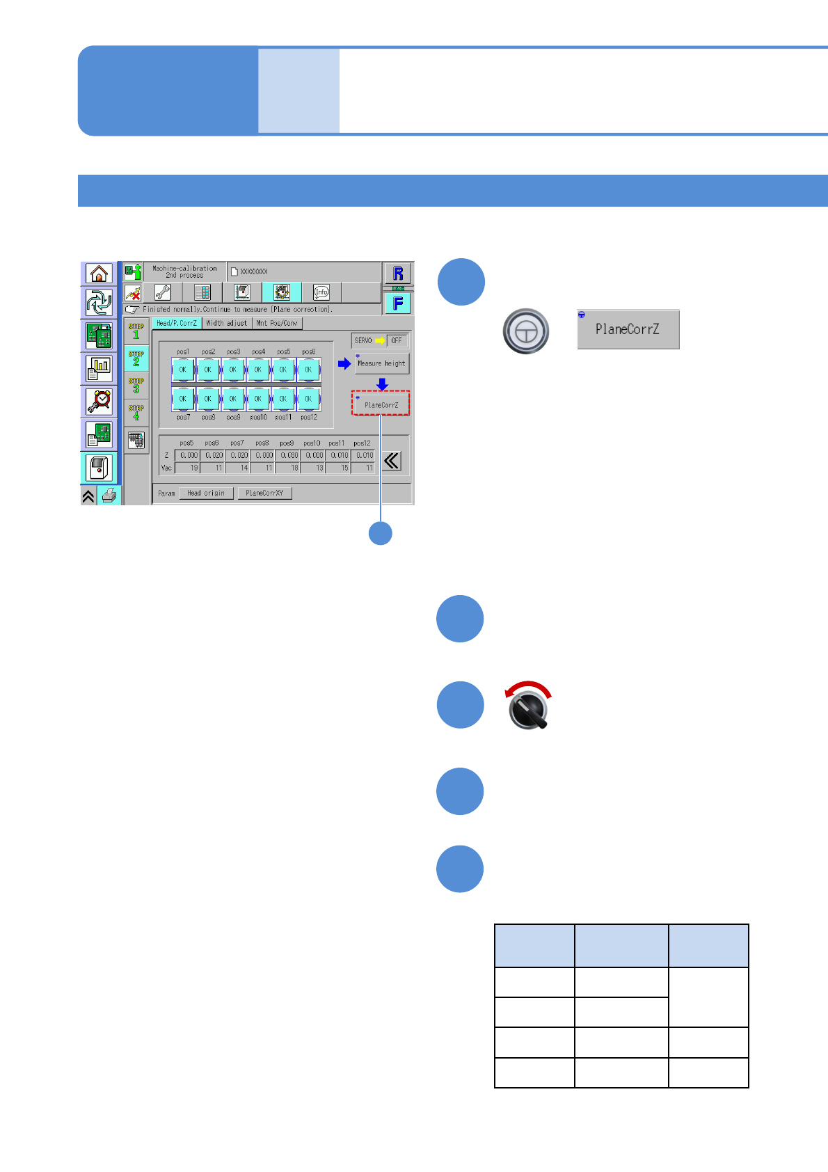 NPM-W 2 EJM7DE-MB-13M-00 21 Confirm that it has been successfully completed, and choose the other table for plane correction Z and then repeat steps from to 21 19 2 20 13-4 -4 17 18 Servo switch ON Close the safety cover…