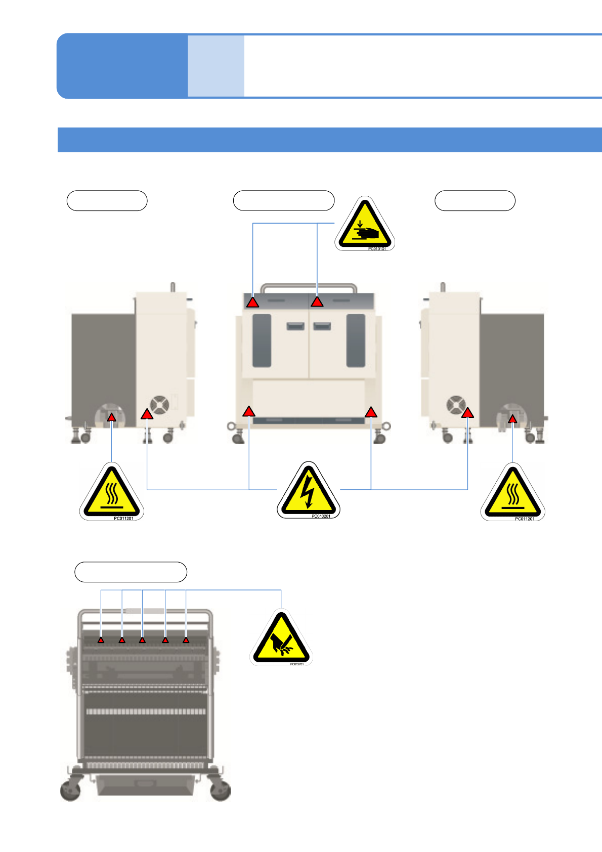 NPM-W 2 EJM7DE-SF-01N-0 0 1-2 -11 C W a r ning labels 6 1-2 W arning labels W arning label ■ T win tray feeder ■ Feeder cart Operator side Right side Left side Operator side