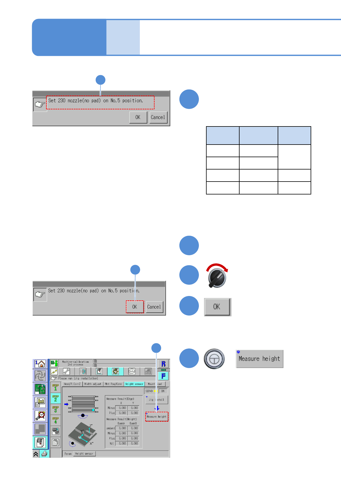 NPM-W 2 EJM7DE-MB-13M-00 + (The head operat es for measurement) Close the safety cover Servo switch ON Maintenance 13-7 13-7 -3 ● Nozzle Confirm the message and install the nozzle (The screen show for light weight16- noz…