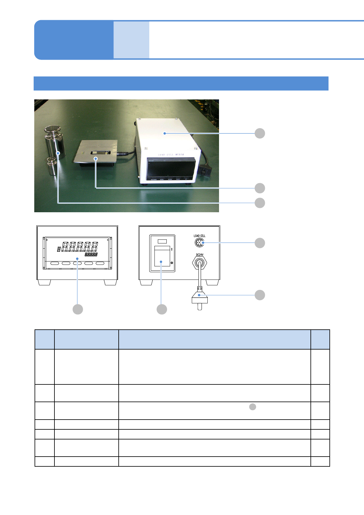 E Power switch Power switch of the load cell meter’s main unit.