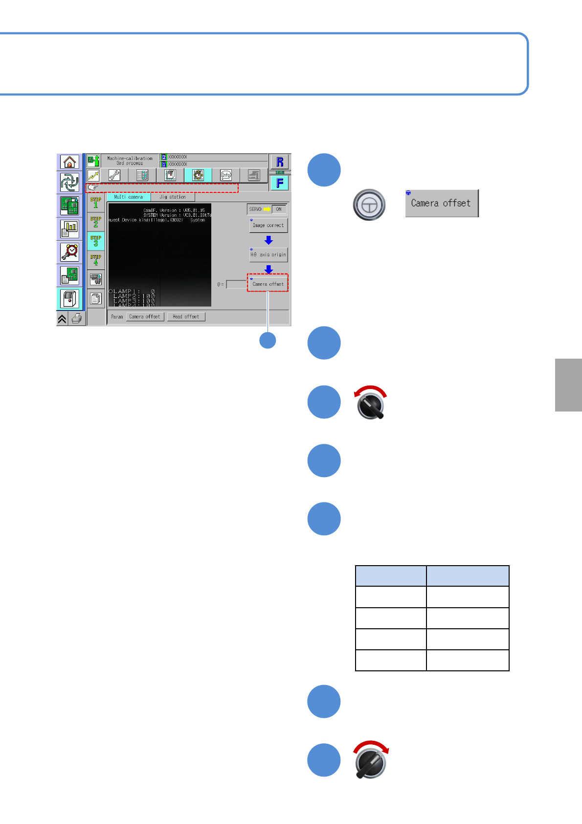 NPM-W 2 EJM7DE-MB-13M-00 13-9 -5 Multi-r ecognition camer a 3 Maintenance 13-9 Close the safety cover Replace the multi-recognition camera jig ● Nozzles that you confirm Head type Nozzle position Before replace After rep…